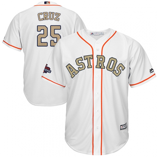 Home>MLB>Houston Astros>Jose Cruz Jr.>Youth Majestic Houston Astros #25 Jose Cruz Jr. Authentic White 2018 Gold Program Cool Base MLB Jersey