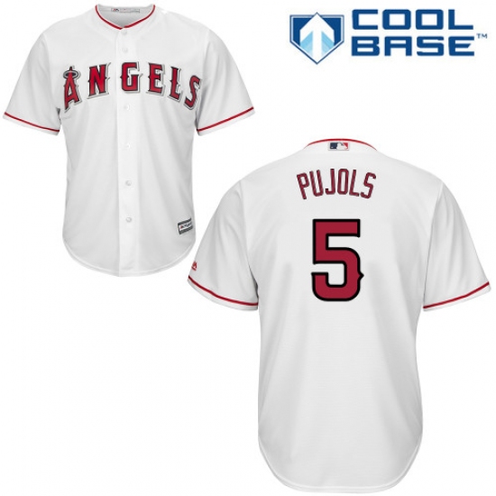 Home>MLB>Los Angeles Angels of Anaheim>Albert Pujols>Youth Majestic Los Angeles Angels of Anaheim #5 Albert Pujols Authentic White Home Cool Base MLB Jersey