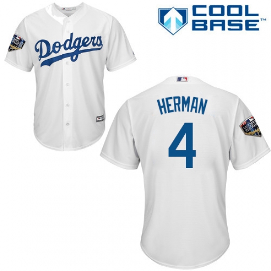 >Youth Majestic Los Angeles Dodgers #4 Babe Herman Authentic White Home Cool Base 2018 World Series MLB Jersey