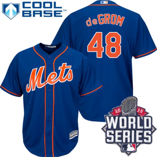 Home>MLB>New York Mets>Jacob deGrom>Youth Majestic New York Mets #48 Jacob DeGrom Replica Royal Blue Alternate Home Cool Base 2015 World Series MLB Jersey