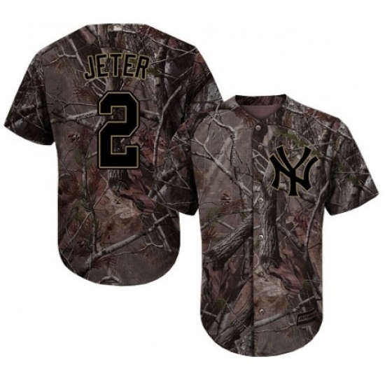 >Youth Majestic New York Yankees #2 Derek Jeter Authentic Camo Realtree Collection Flex Base MLB Jersey