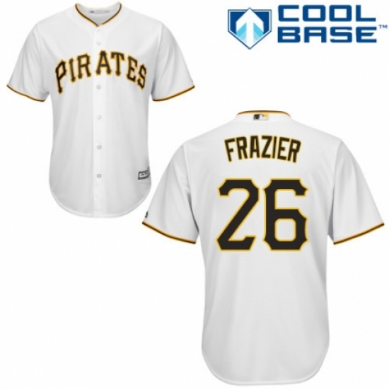 >Youth Majestic Pittsburgh Pirates #26 Adam Frazier Authentic White Home Cool Base MLB Jersey