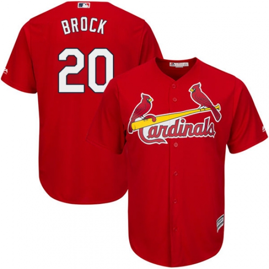 Home>MLB>St. Louis Cardinals>Lou Brock>Youth Majestic St. Louis Cardinals #20 Lou Brock Authentic Red Alternate Cool Base MLB Jersey