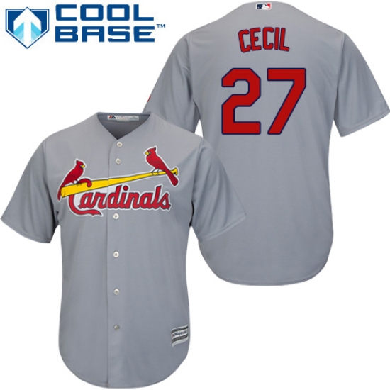 Home>MLB>St. Louis Cardinals>Brett Cecil>Youth Majestic St. Louis Cardinals #27 Brett Cecil Replica Grey Road Cool Base MLB Jersey