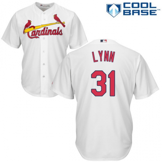 Home>MLB>St. Louis Cardinals>Lance Lynn>Youth Majestic St. Louis Cardinals #31 Lance Lynn Replica White Home Cool Base MLB Jersey