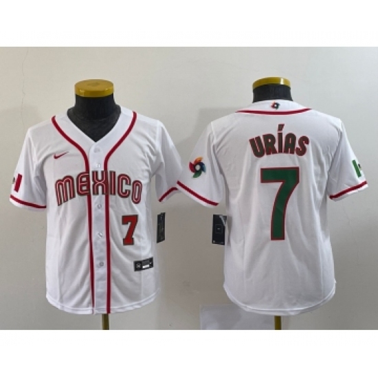 Men's Mexico Baseball #7 Julio Urias 2023 White World Baseball Classic Stitched Jerseys