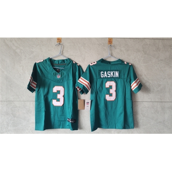 >Youth Miami Dolphins #3 Myles Gaskin Aqua 2024 F U S E Alternate Vapor Limited Stitched Football Jersey