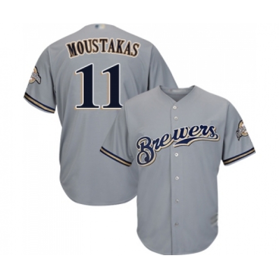 Youth Milwaukee Brewers #11 Mike Moustakas Replica Grey Road Cool Base Baseball Jersey