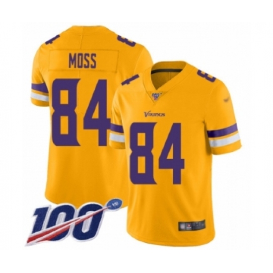 >Youth Minnesota Vikings #84 Randy Moss Limited Gold Inverted Legend 100th Season Football Jersey