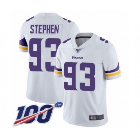 >Youth Minnesota Vikings #93 Shamar Stephen White Vapor Untouchable Limited Player 100th Season Football Jersey