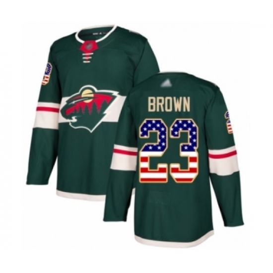Men's Minnesota Wild #23 J.T. Brown Authentic Green USA Flag Fashion Hockey Jersey