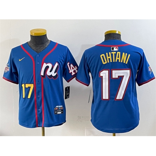 >Youth National League #17 Shohei Ohtani Blue 2025 All-Star Edition Limited Stitched Baseball Jersey