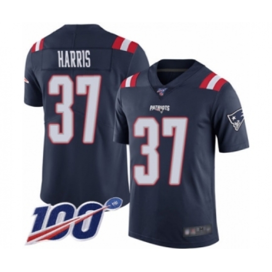 >Youth New England Patriots #37 Damien Harris Limited Navy Blue Rush Vapor Untouchable 100th Season Football Jersey