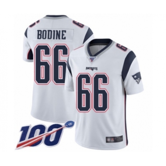 >Youth New England Patriots #66 Russell Bodine White Vapor Untouchable Limited Player 100th Season Football Jersey