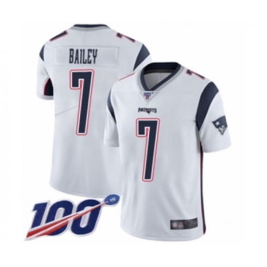 Men's New England Patriots #7 Jake Bailey White Vapor Untouchable Limited Player 100th Season Football Jersey
