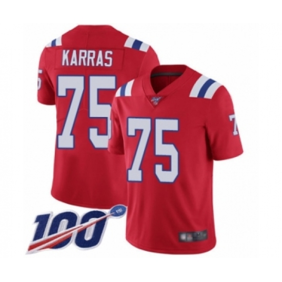 >Youth New England Patriots #75 Ted Karras Red Alternate Vapor Untouchable Limited Player 100th Season Football Jersey