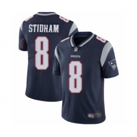 >Youth New England Patriots #8 Jarrett Stidham Navy Blue Team Color Vapor Untouchable Limited Player Football Jersey
