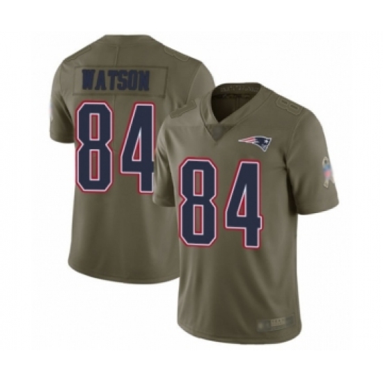 >Youth New England Patriots #84 Benjamin Watson Limited Olive 2017 Salute to Service Football Jersey