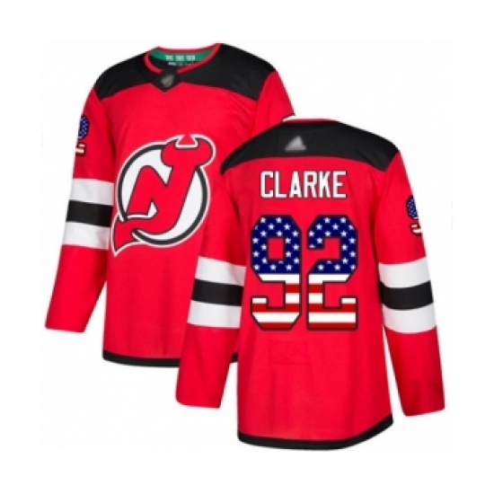 >Youth New Jersey Devils #92 Graeme Clarke Authentic Red USA Flag Fashion Hockey Jersey