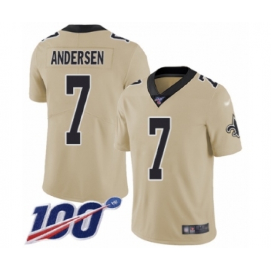 >Youth New Orleans Saints #7 Morten Andersen Limited Gold Inverted Legend 100th Season Football Jersey