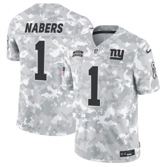 >Youth New York Giants #1 Malik Nabers 2024 F U S E Arctic Camo Salute To Service Limited Stitched Football Jersey