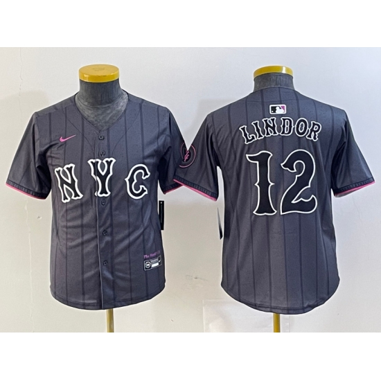 Youth New York Mets #12 Francisco Lindor Number Grey 2024 City Connect Cool Base Stitched Jersey