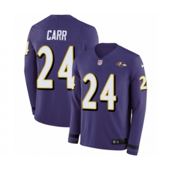 >Youth Nike Baltimore Ravens #24 Brandon Carr Limited Purple Therma Long Sleeve NFL Jersey