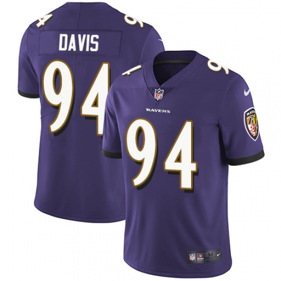 Youth Nike Baltimore Ravens #94 Carl Davis Purple Team Color Vapor Untouchable Limited Player NFL Jersey