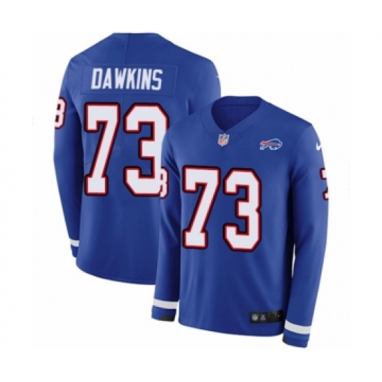 >Youth Nike Buffalo Bills #73 Dion Dawkins Limited Royal Blue Therma Long Sleeve NFL Jersey