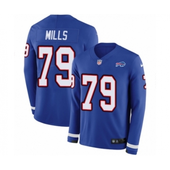 >Youth Nike Buffalo Bills #79 Jordan Mills Limited Royal Blue Therma Long Sleeve NFL Jersey