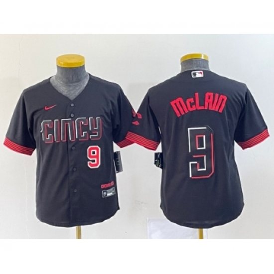 >Youth Nike Cincinnati Reds #9 Matt McLain Number Black 2023 City Connect Cool Base Stitched Jersey