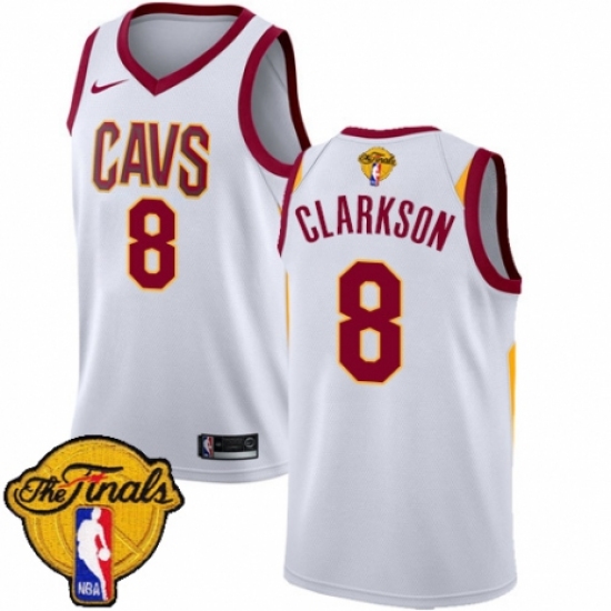 >Youth Nike Cleveland Cavaliers #8 Jordan Clarkson Swingman White 2018 NBA Finals Bound NBA Jersey - Association Edition