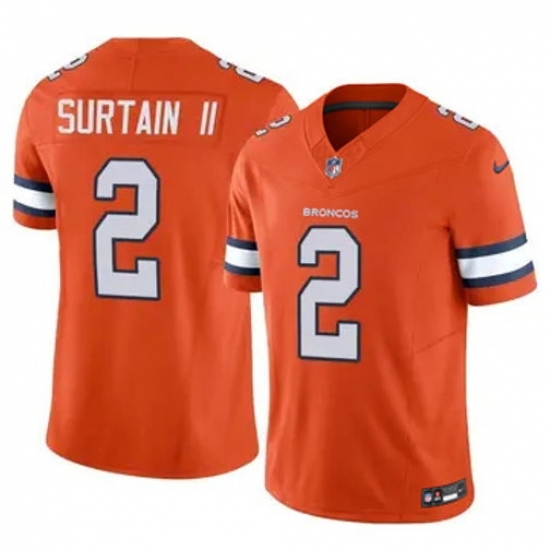 Men's Denver Broncos #2 Patrick Surtain II Orange White 2024 F.U.S.E. V2 Throwback Vapor Limited Alternate Stitched Jersey