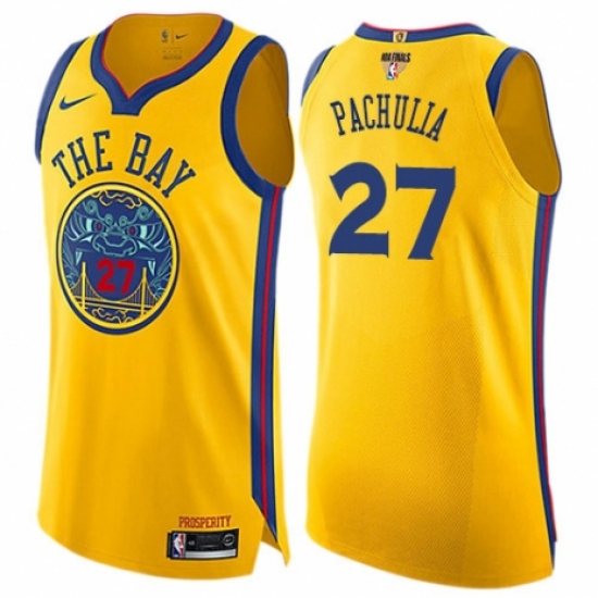 Men's Nike Golden State Warriors #27 Zaza Pachulia Swingman Gold 2018 NBA Finals Bound NBA Jersey - City Edition