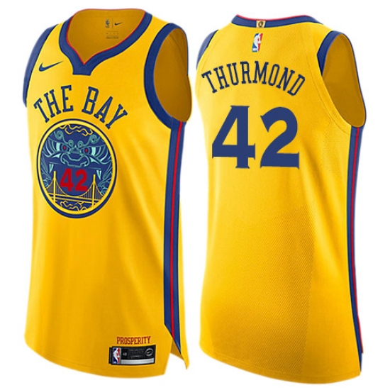 Home>NBA>Golden State Warriors>Nate Thurmond>Youth Nike Golden State Warriors #42 Nate Thurmond Swingman Gold NBA Jersey - City Edition