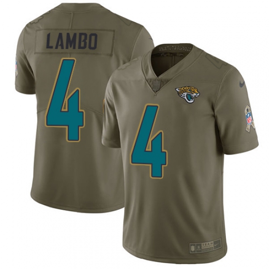 Home>NFL>Jacksonville Jaguars>Josh Lambo>Youth Nike Jacksonville Jaguars #4 Josh Lambo Limited Olive 2017 Salute to Service NFL Jersey
