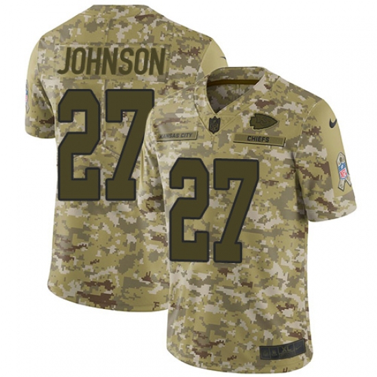 Youth Nike Kansas City Chiefs #27 Larry Johnson Limited Camo 2018 Salute to Service NFL Jersey