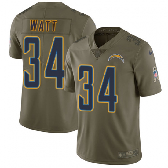 Home>NFL>Los Angeles Chargers>Derek Watt>Youth Nike Los Angeles Chargers #34 Derek Watt Limited Olive 2017 Salute to Service NFL Jersey