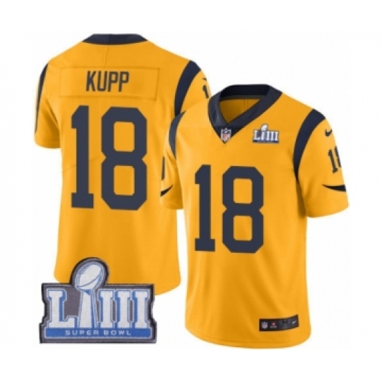 >Youth Nike Los Angeles Rams #18 Cooper Kupp Limited Gold Rush Vapor Untouchable Super Bowl LIII Bound NFL Jersey