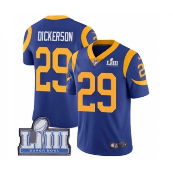 >Youth Nike Los Angeles Rams #29 Eric Dickerson Royal Blue Alternate Vapor Untouchable Limited Player Super Bowl LIII Bound NFL Jersey