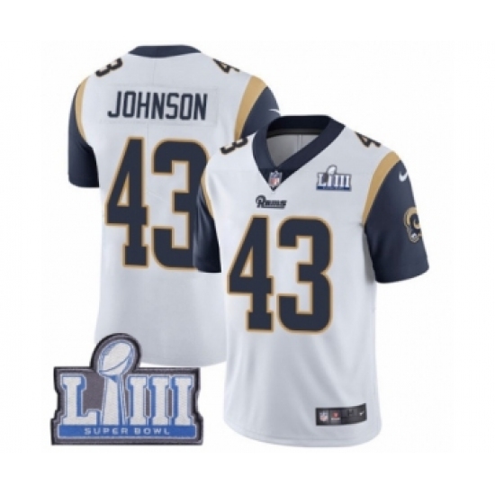 Youth Nike Los Angeles Rams #43 John Johnson White Vapor Untouchable Limited Player Super Bowl LIII Bound NFL Jersey