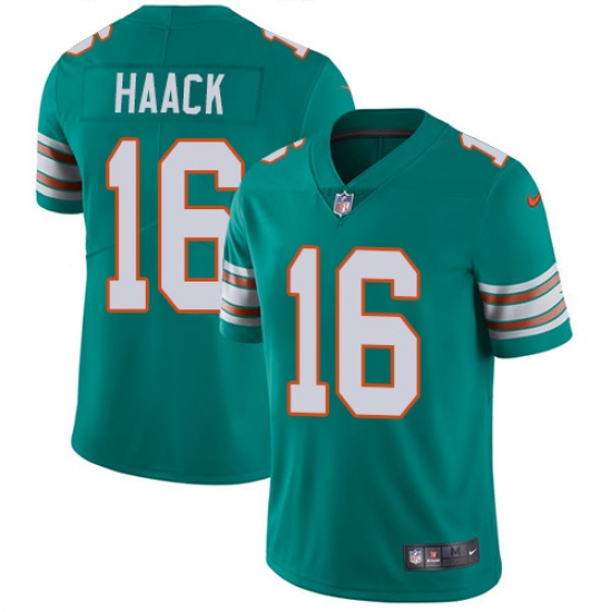 Home>NFL>Miami Dolphins>Matt Haack>Youth Nike Miami Dolphins #16 Matt Haack Aqua Green Alternate Vapor Untouchable Limited Player NFL Jersey