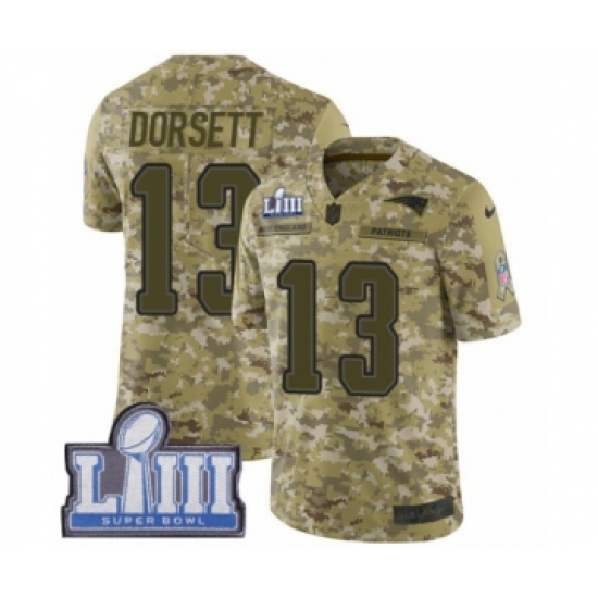Youth Nike New England Patriots #13 Phillip Dorsett Limited Camo 2018 Salute to Service Super Bowl LIII Bound NFL Jersey