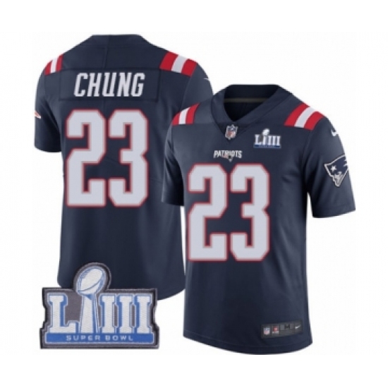 >Youth Nike New England Patriots #23 Patrick Chung Limited Navy Blue Rush Vapor Untouchable Super Bowl LIII Bound NFL Jersey