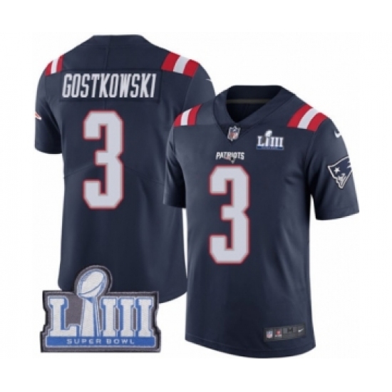 >Youth Nike New England Patriots #3 Stephen Gostkowski Limited Navy Blue Rush Vapor Untouchable Super Bowl LIII Bound NFL Jersey