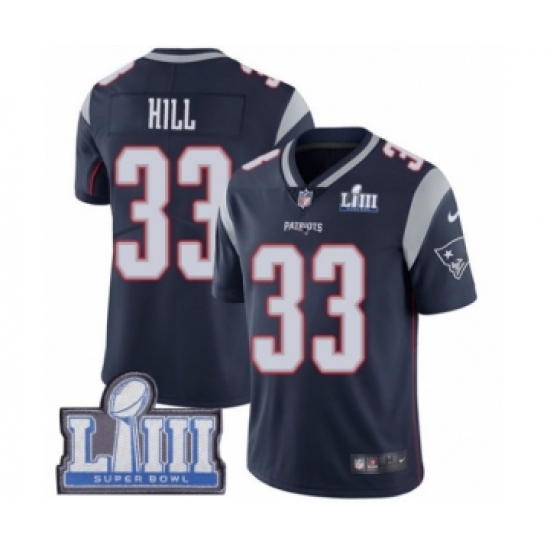 Youth Nike New England Patriots #33 Jeremy Hill Navy Blue Team Color Vapor Untouchable Limited Player Super Bowl LIII Bound NFL Jersey