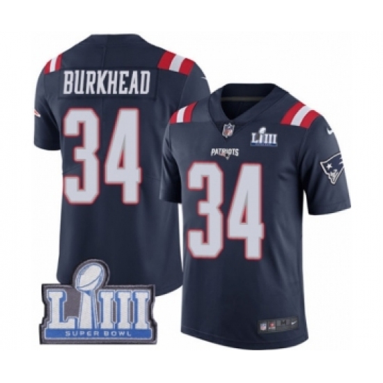 Men's Nike New England Patriots #34 Rex Burkhead Navy Blue Team Color Vapor Untouchable Limited Player Super Bowl LIII Bound NFL Jersey