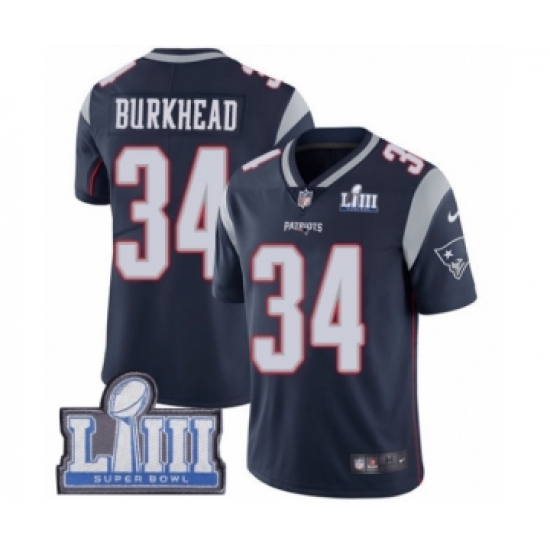 Youth Nike New England Patriots #34 Rex Burkhead Limited Navy Blue Rush Vapor Untouchable Super Bowl LIII Bound NFL Jersey