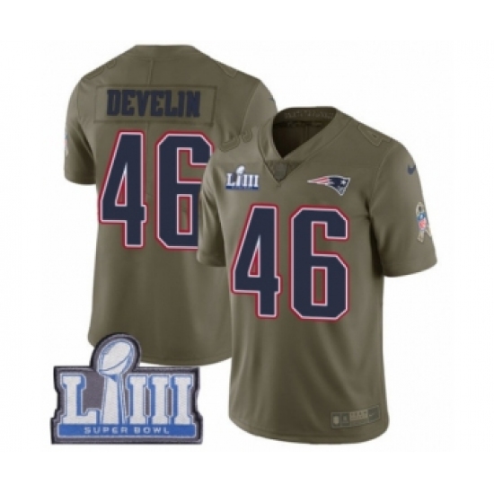 Men's Nike New England Patriots #46 James Develin Limited Olive 2017 Salute to Service Super Bowl LIII Bound NFL Jersey