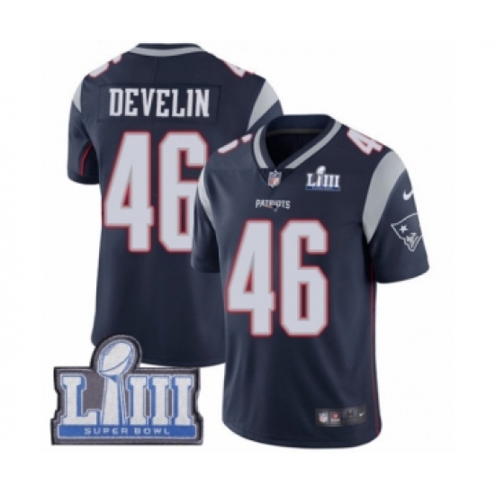 Youth Nike New England Patriots #46 James Develin Navy Blue Team Color Vapor Untouchable Limited Player Super Bowl LIII Bound NFL Jersey